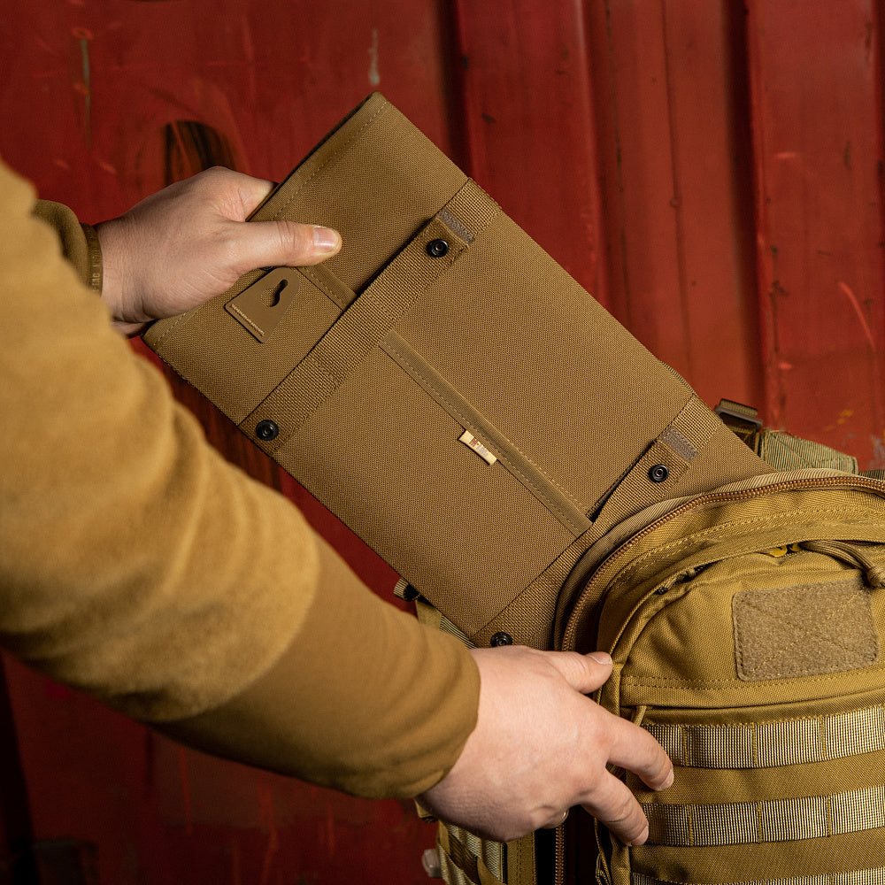 The convenient M-Tac organizer for storing and transporting your patches. The panel folds into three folds to fit into most tactical and urban backpacks. In the unfolded form, the panel can be hung both horizontally and vertically using hinges made of strong rubberized material. And with the help of straps on the buttons, the panel can be fixed vertically on any horizontal crossbar of small diameter.